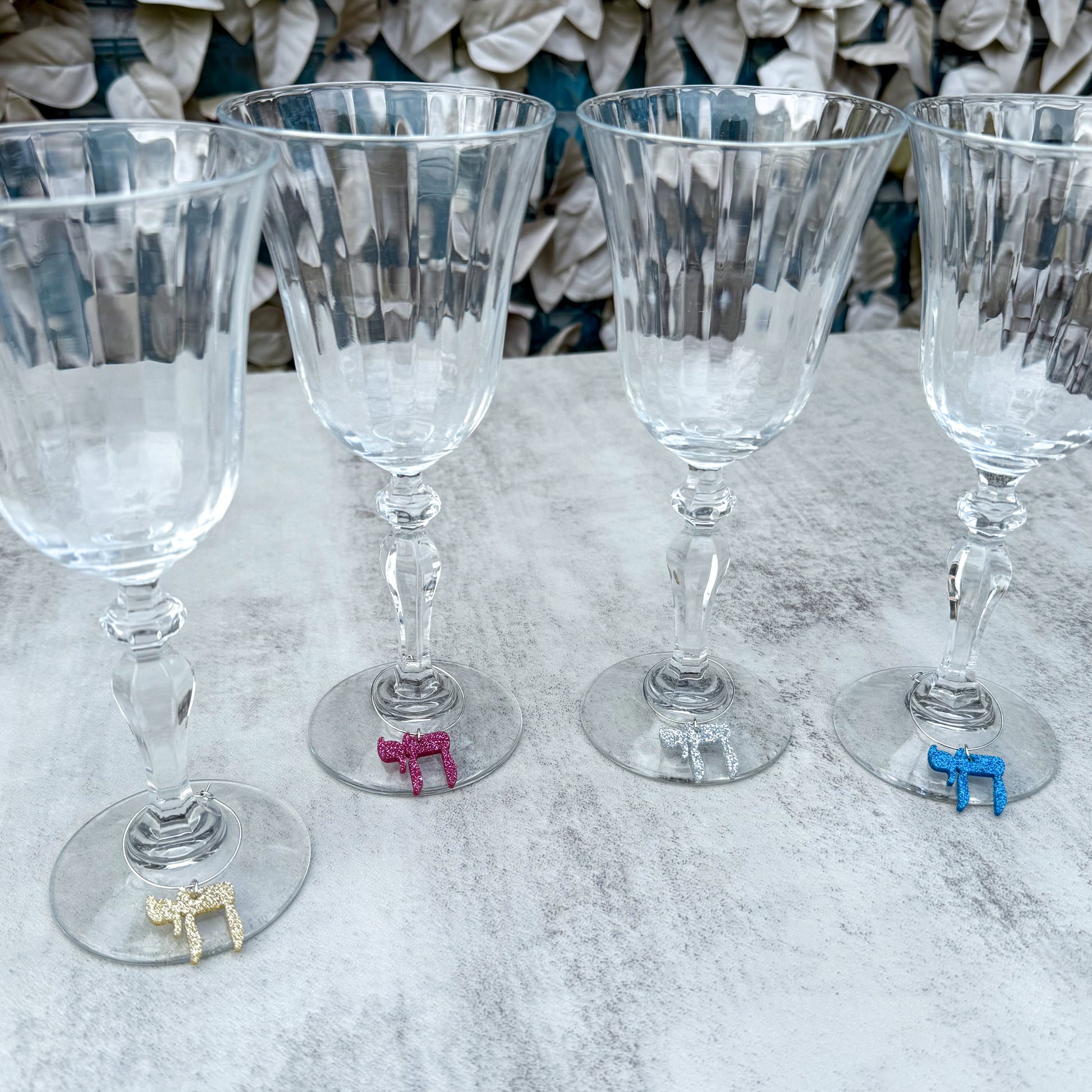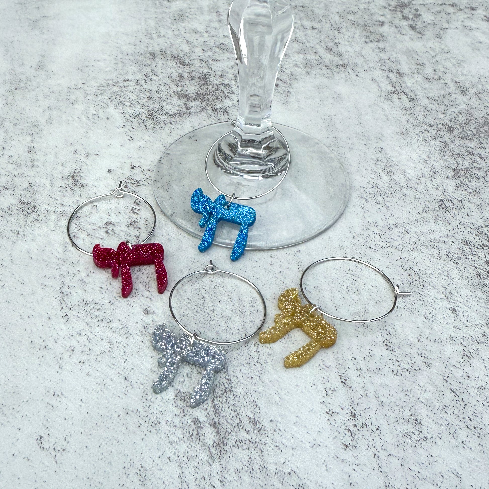 Celebrate life — literally — with these glitter acrylic Chai charms. Sparkly, fun, and full of energy, they’re the perfect way to add color and personality to your table while ensuring every guest can spot their glass.