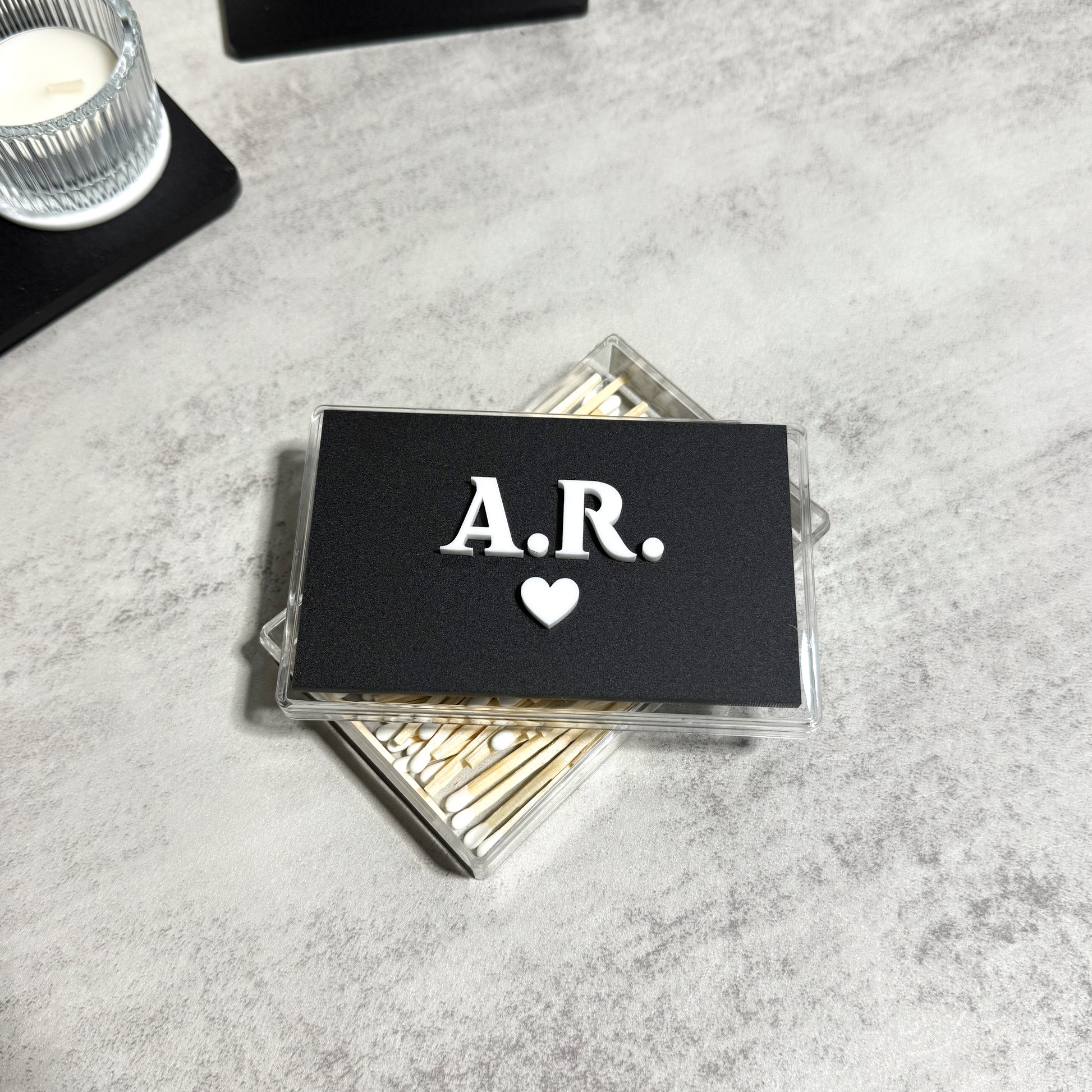 Pair your candle holder with the coordinating acrylic match box for a complete, cohesive set. Featuring the same matte black finish and matching 3D initials, it keeps your Shabbat essentials beautifully organized and display-ready.